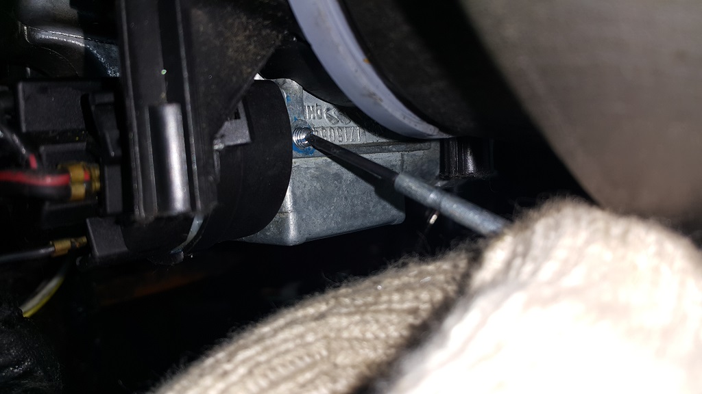 - Parafusos cisalháveis que prendem carcaça da trava na coluna. Removendo-se eles é possível tirar e principalmente encaixar o cilindro pressionando a trava com a mão para posição que deve estar para encaixar o cilindro novamente. Detalhe que se estragar os mesmos, tem que encontrar parafusos que tenham a cabeça do mesmo diametro para que entrem no pequeno espaço destinado a eles.