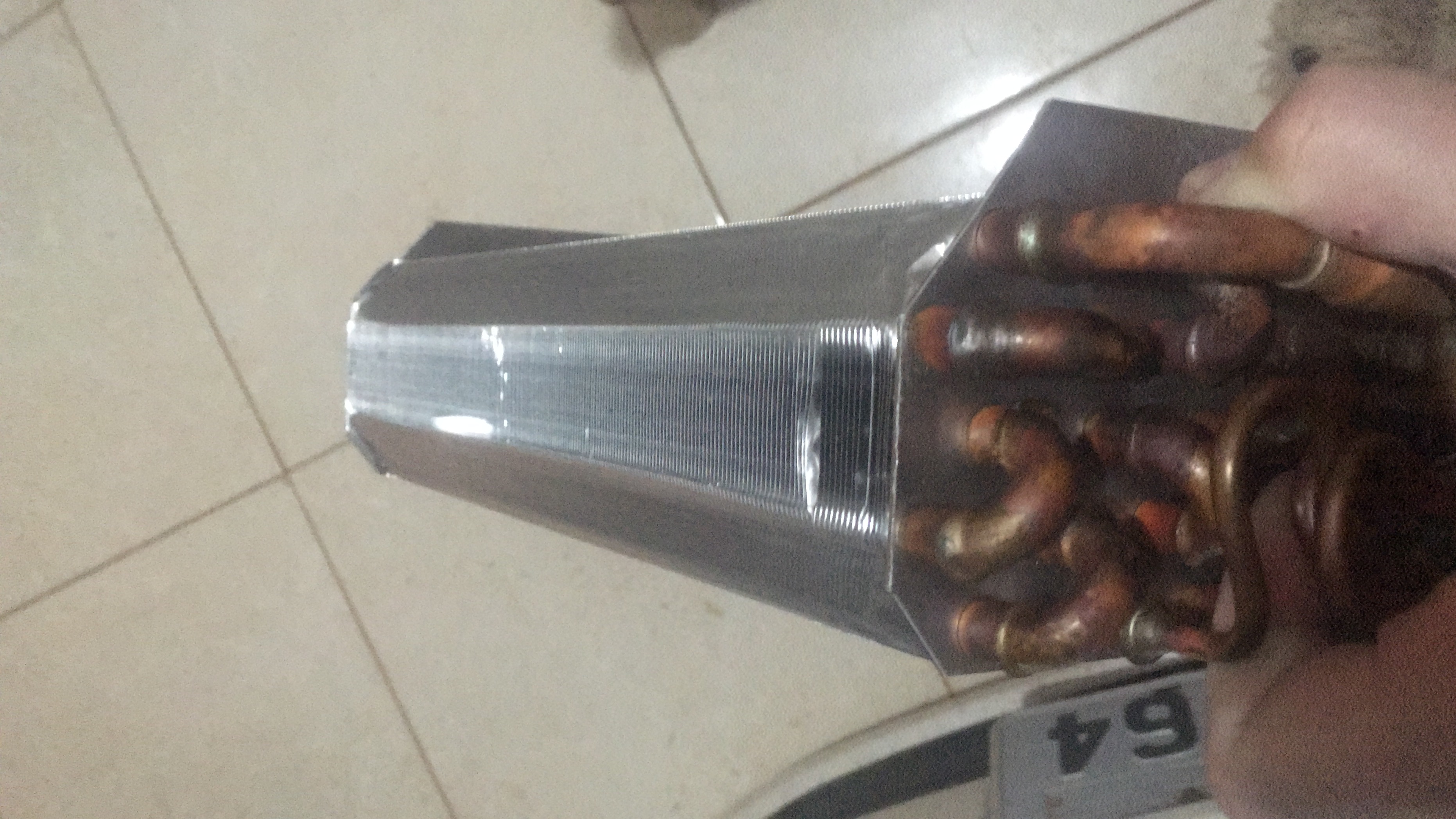 O problema do evaporador em questão é que as aletas estavam meio corroídas e estava quase impossível acertá-las. Como a caixa R12 já tem a fama de ter menos vento que a caixa R134, deiei ele de lado e vamos partir para outra solução.