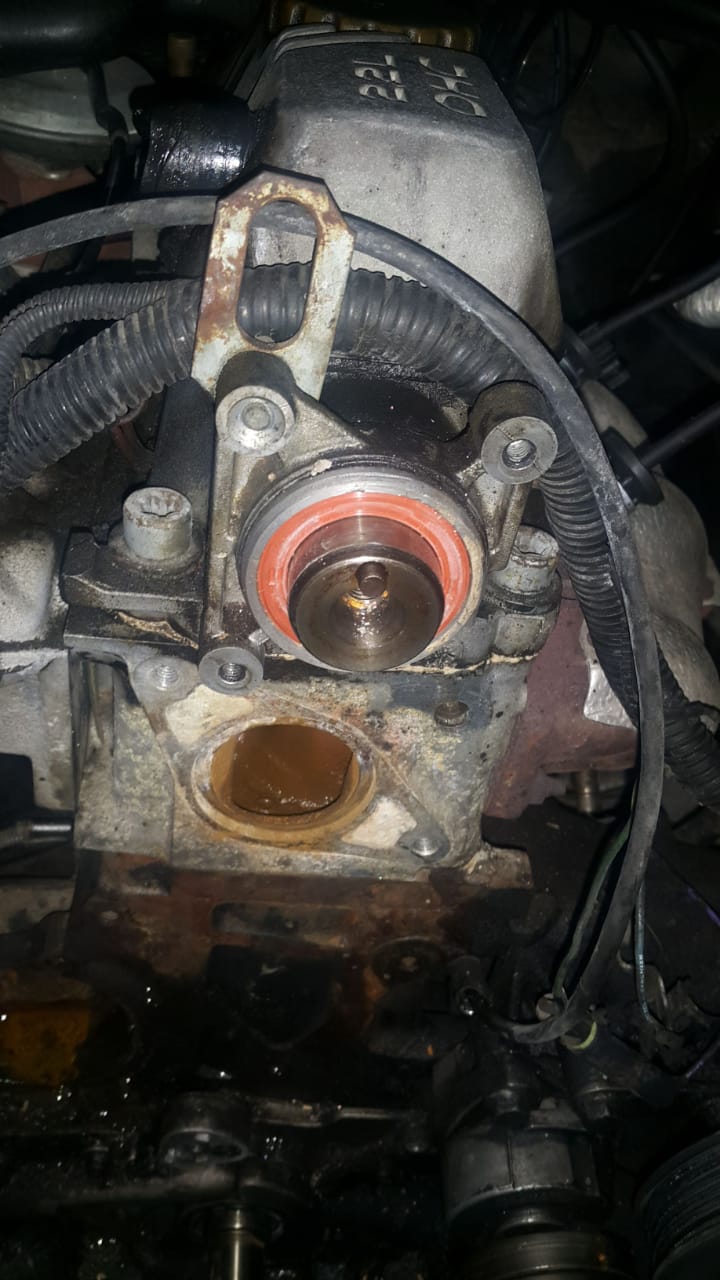Bom, desmontei a capa da correia pra olhar e a cada volta a bomba cuspia um jatinho de água kkk.... quase um sopro pelo respiro....