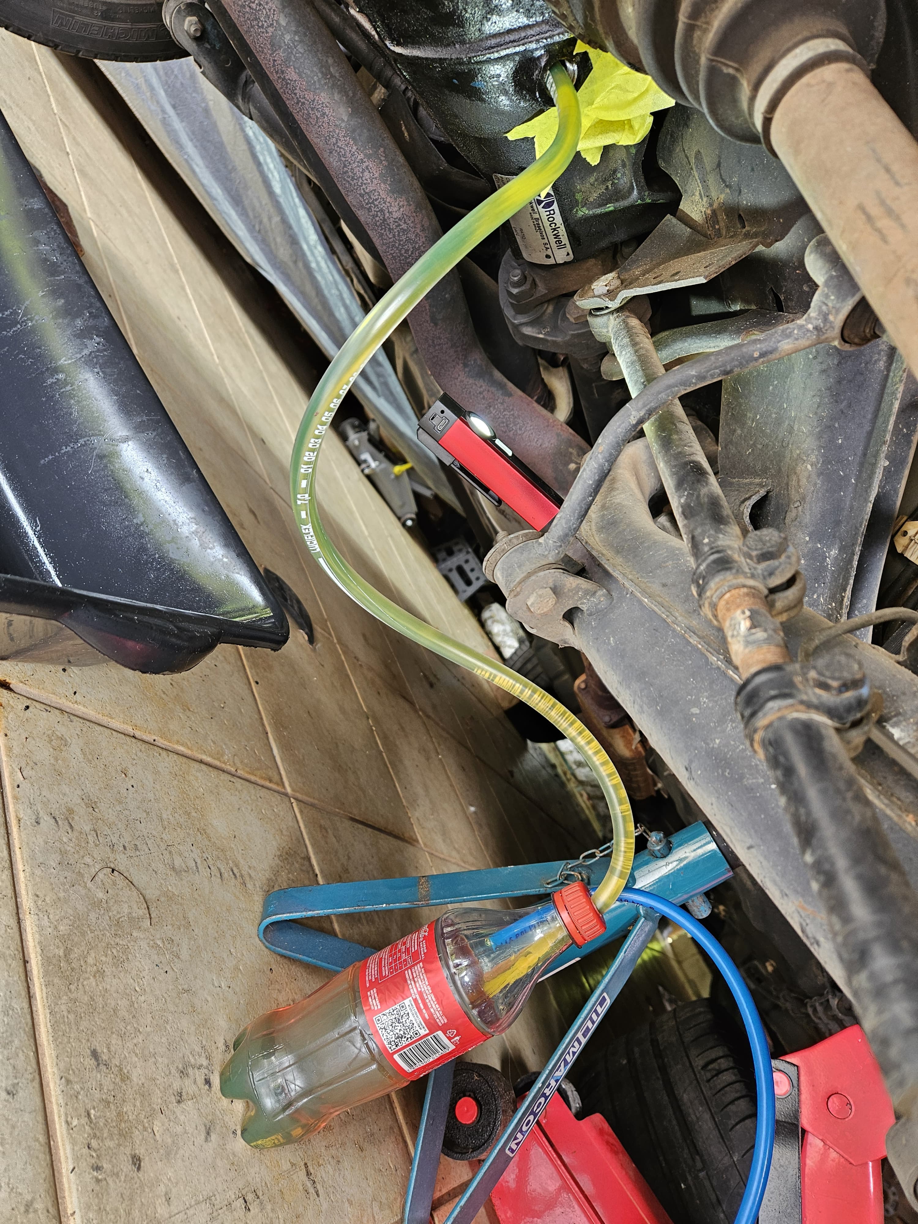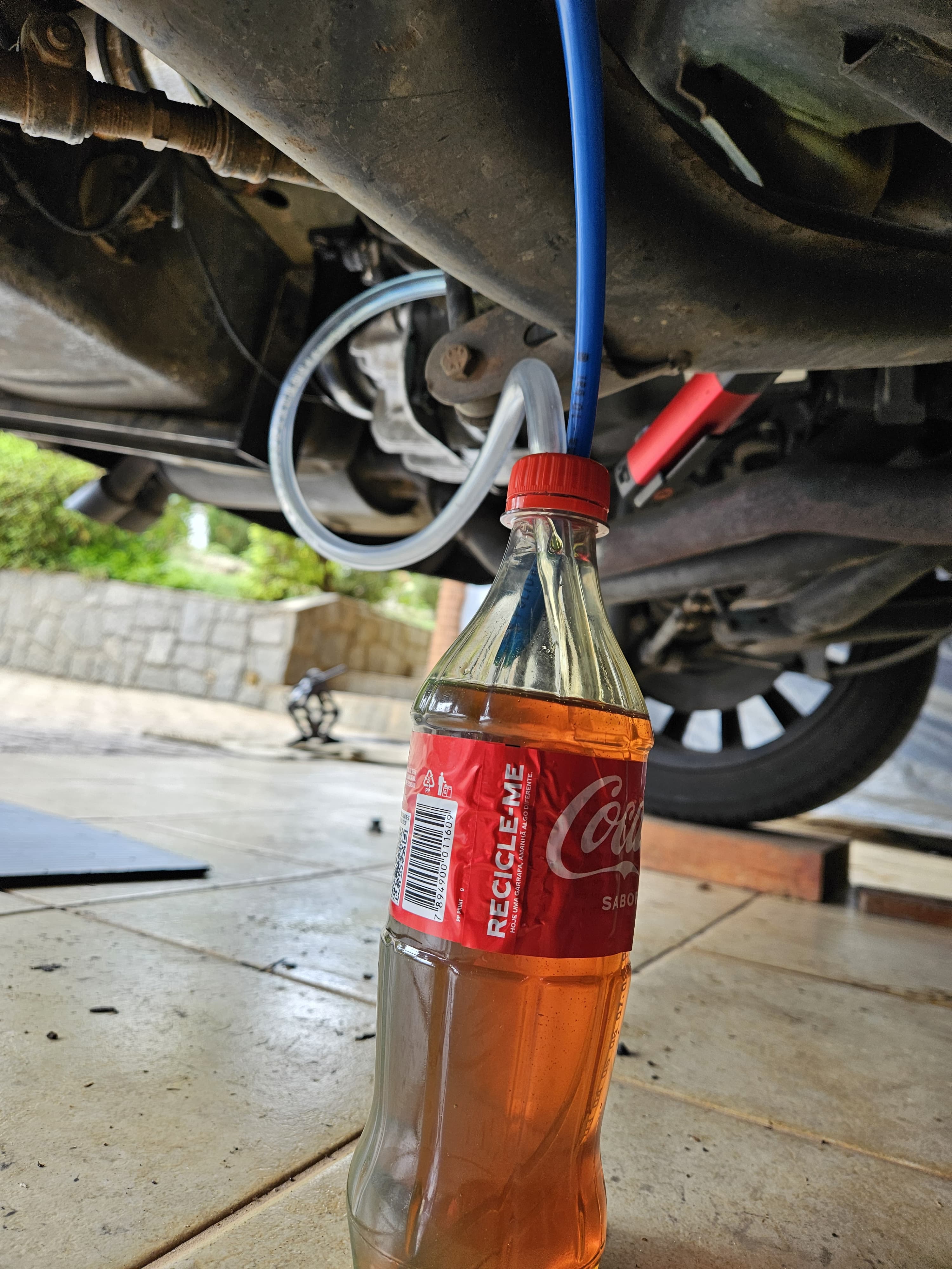 Como já estava com a mão na massa, aproveitei para fazer também a sangria de todo sistema de freios, para trocar todo o fluído, que com certeza nunca foi trocado, o estado do reservatório estava péssimo.