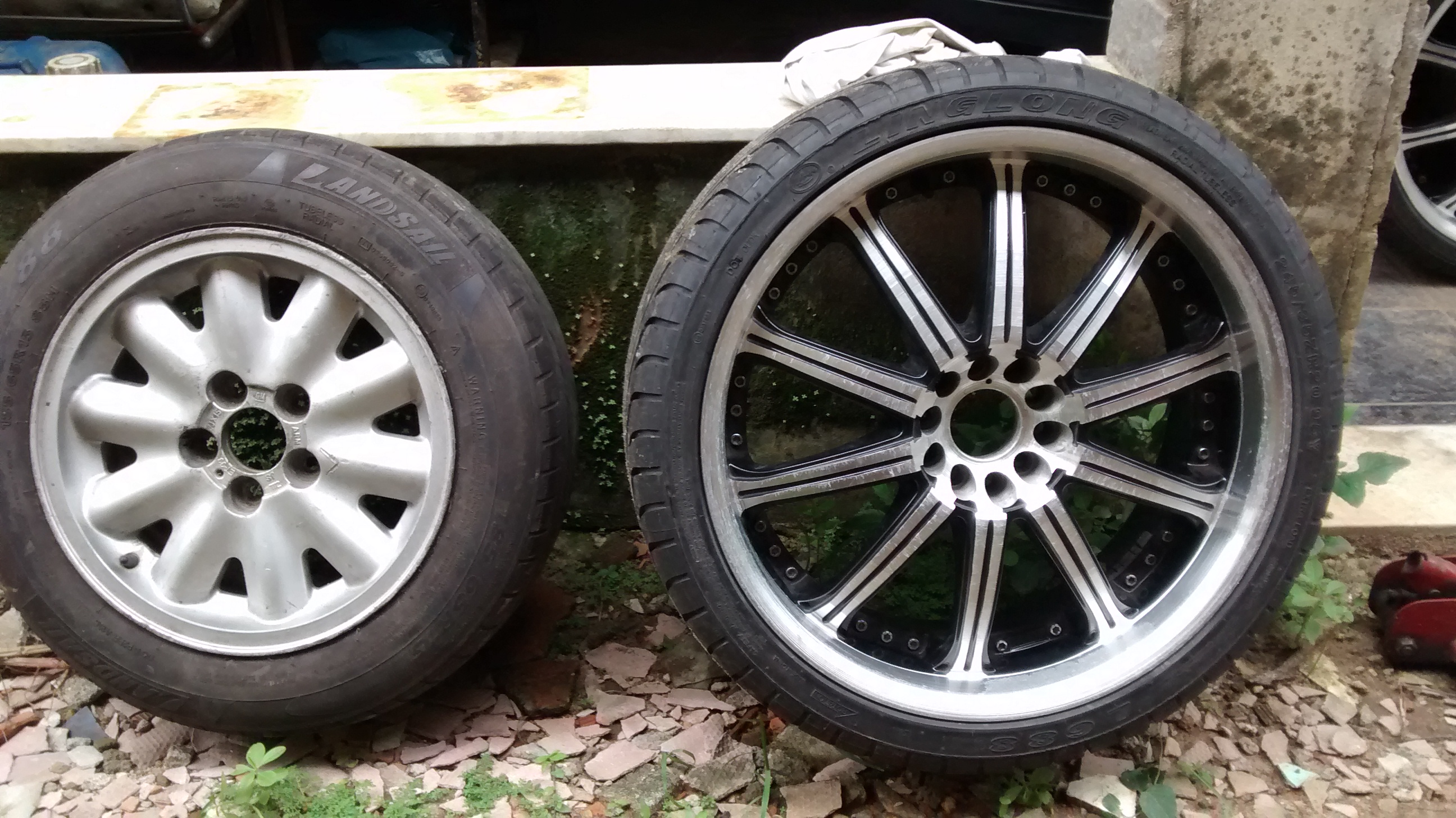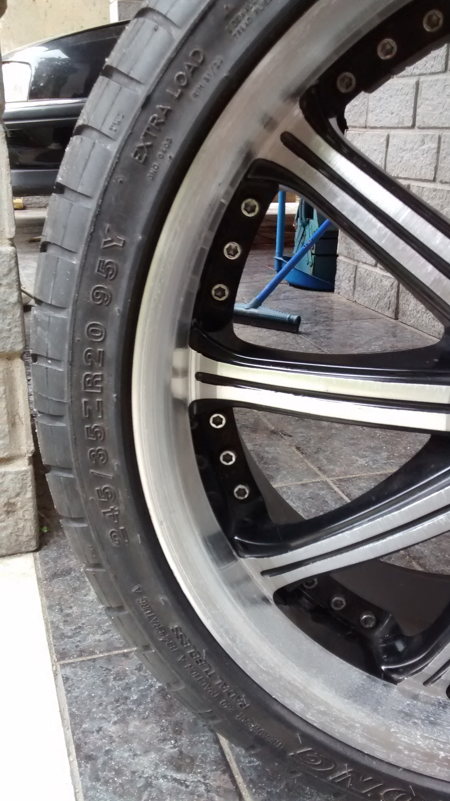 Comparando o pneu que estava nas rodas dianteiras do meu carro (225/ 30 r 20) com o que estava nas rodas do suprema do meu pai (225/ 35 r 20), Agora ele colocou um par de 245 na traseira e eu catei dois 225/ 35 pra mim =P  Perfil 30 é baixo demais pro meu gosto