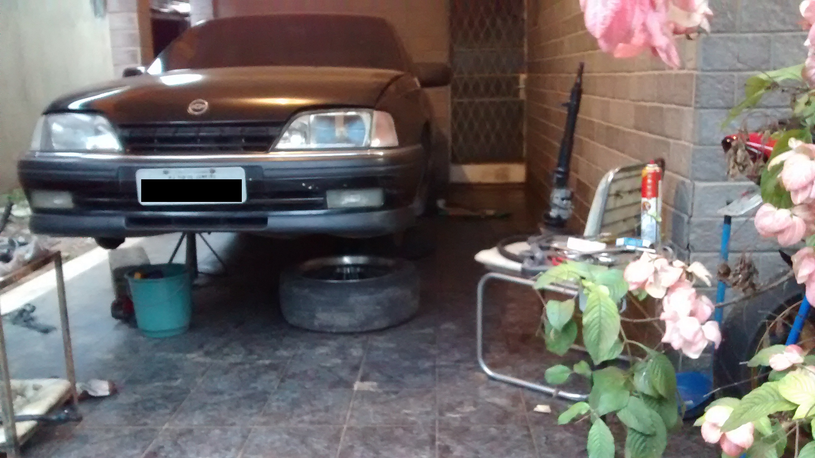 Essa foto é bem simbólica. Tirei logo antes de colocar as rodas dianteiras pra descer o carro dos cavaletes onde ele ficou por meses a fio. Já o coloquei no chão tem umas duas semanas, acabei não tirando mais fotos