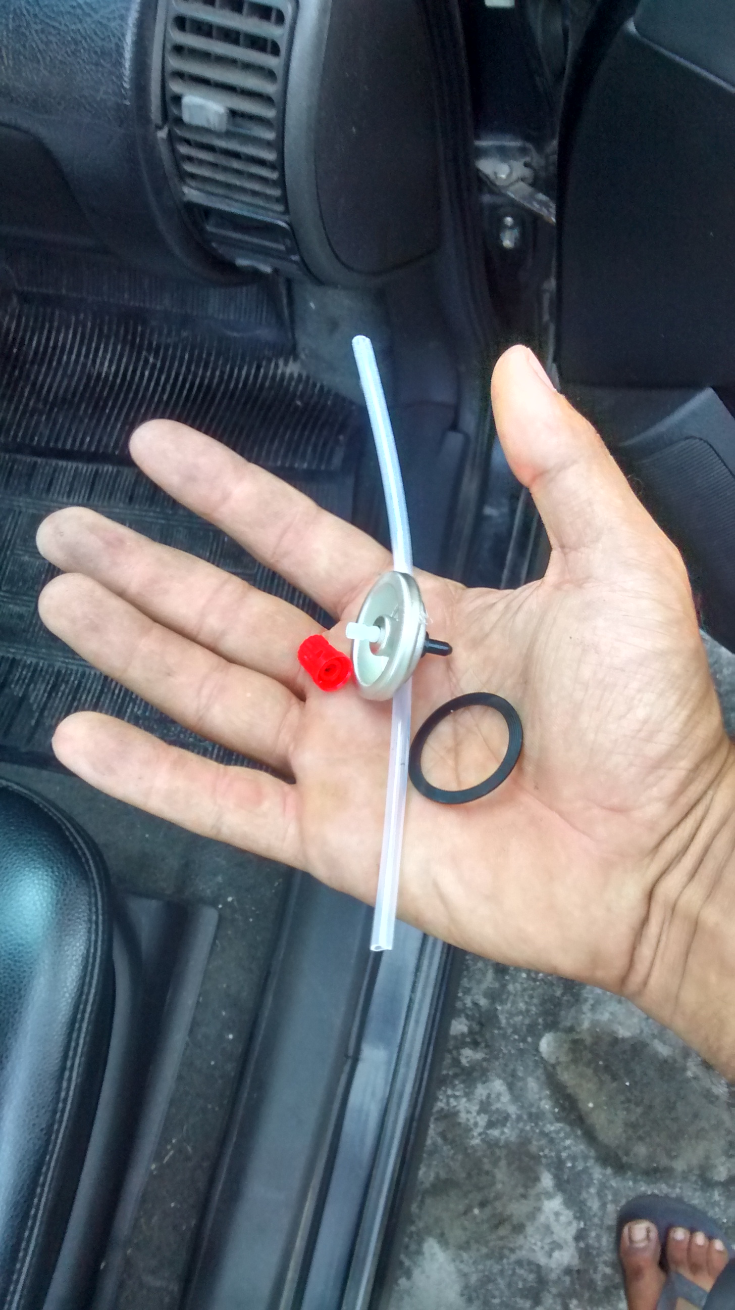 Lógico que fiquei apavorado, mas tirando a sujeirada que fez a garrafinha de silicone spray quando estourou... tudo bem. Sim, foi uma droga, mas melhor do que o carro pegando fogo, como pensei que seria. hehe.