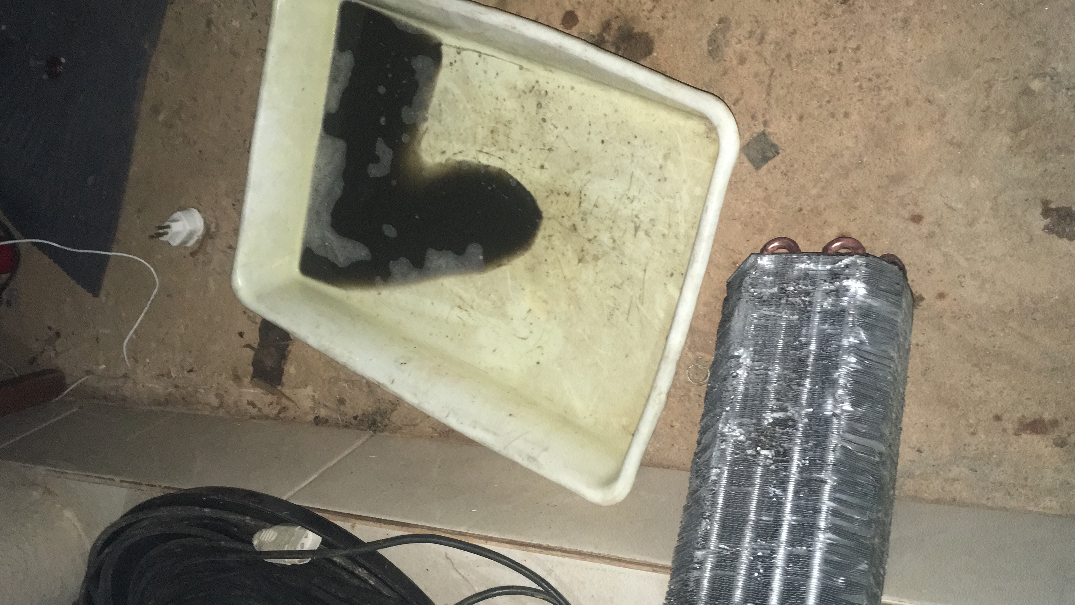 Evaporador removido, tinha alguns indícios de óleo na conexão da corta fogo. Como era muito pouco, acabou ficando inconclusivo se realmente estava vazando ou se a espuma que estava suja.