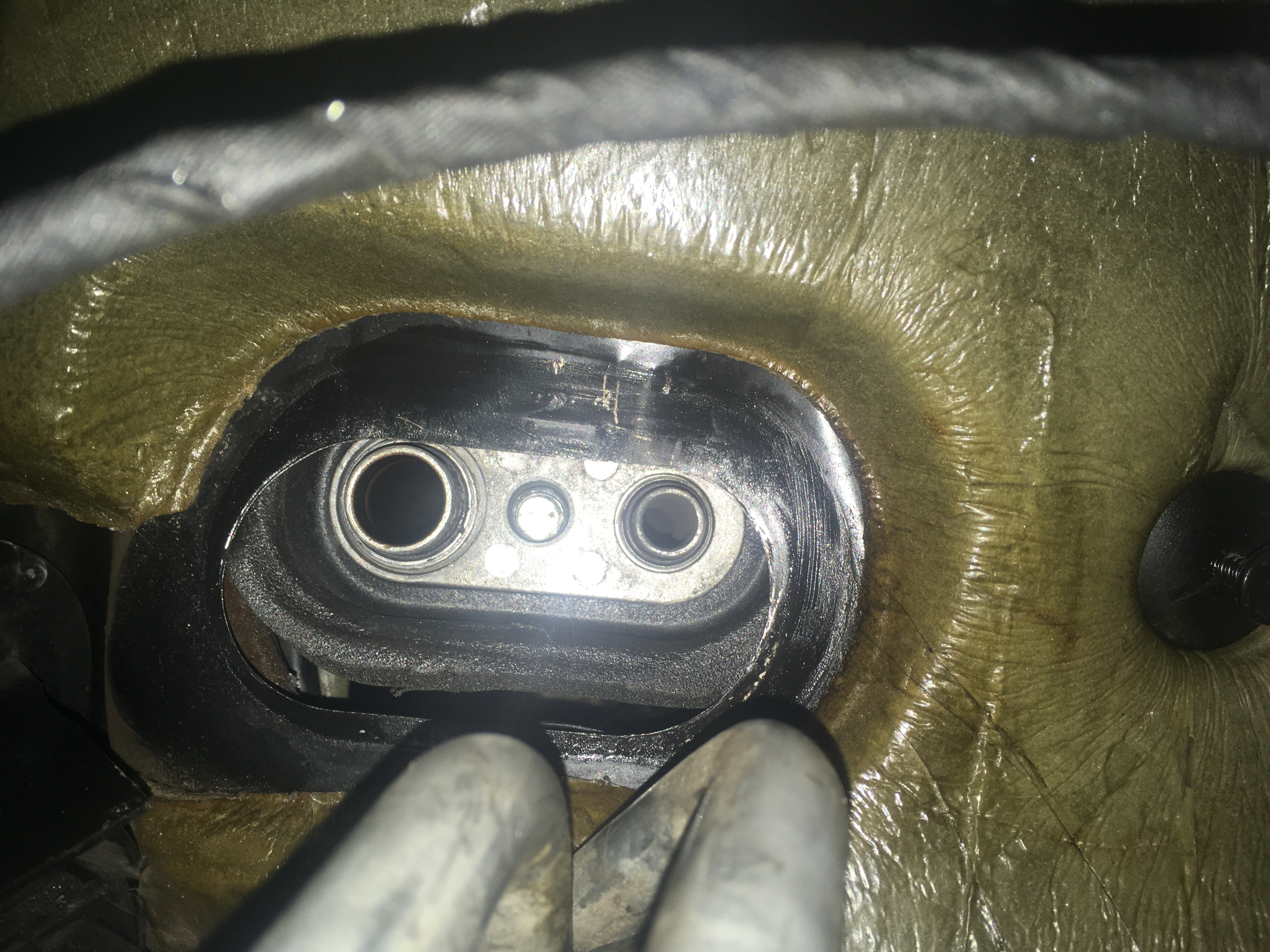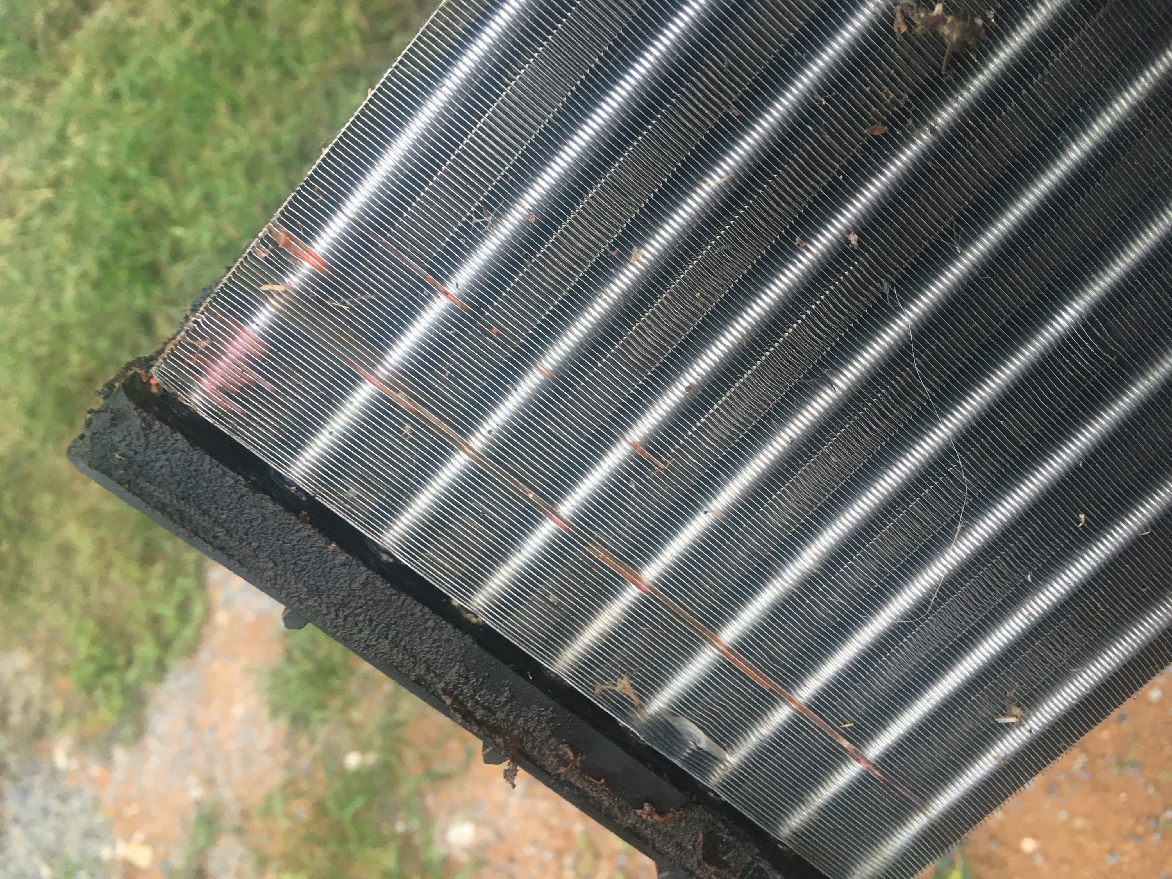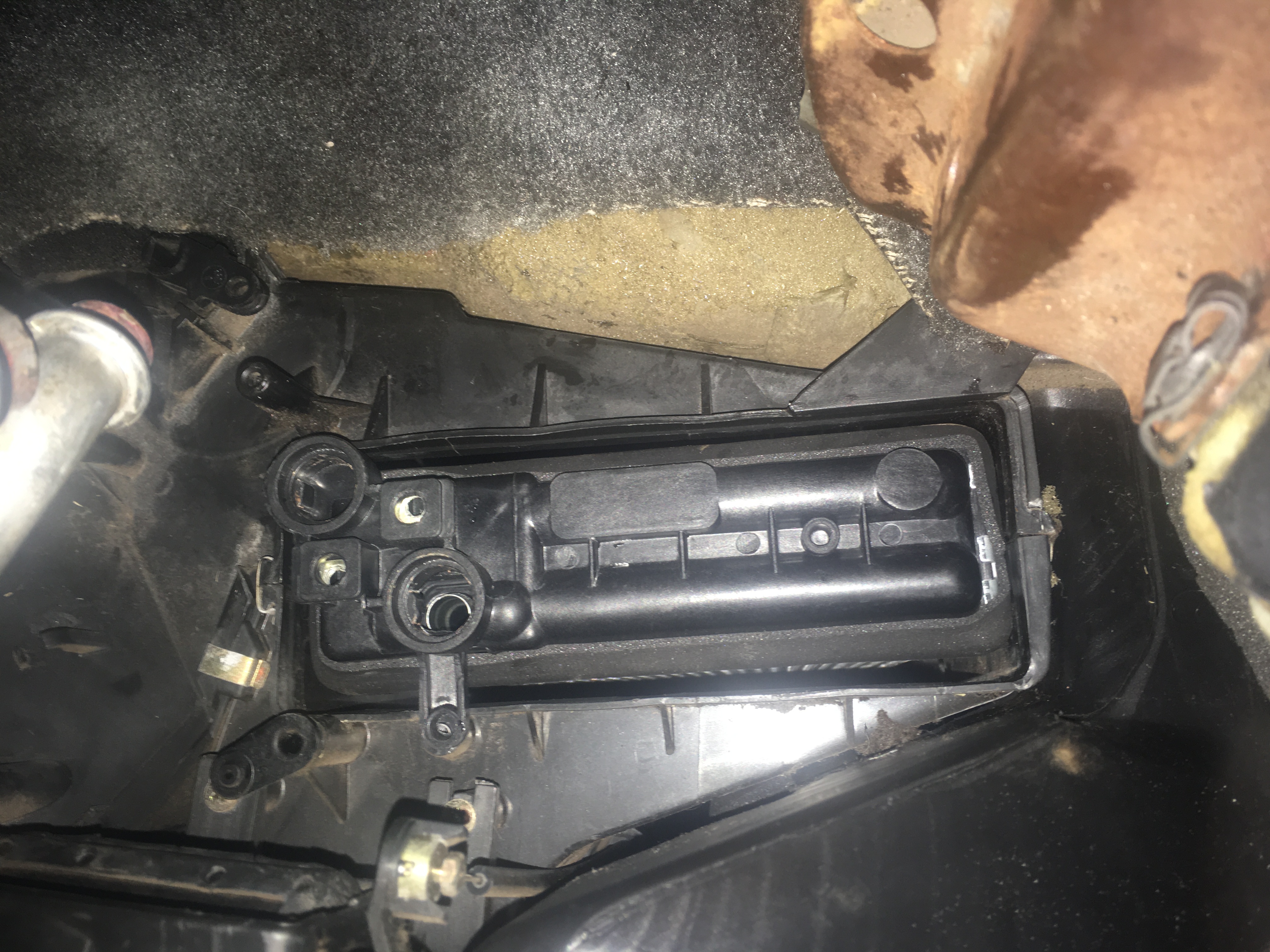 Ao puxar o radiador, de fato não estava maluco ao sentir cheiro de aditivo ao mudar para ar quente.. Tinha um vazamento interno nele e a caixa estava melecada por dentro. Uma pena pois ele estava com aspecto muito novo.