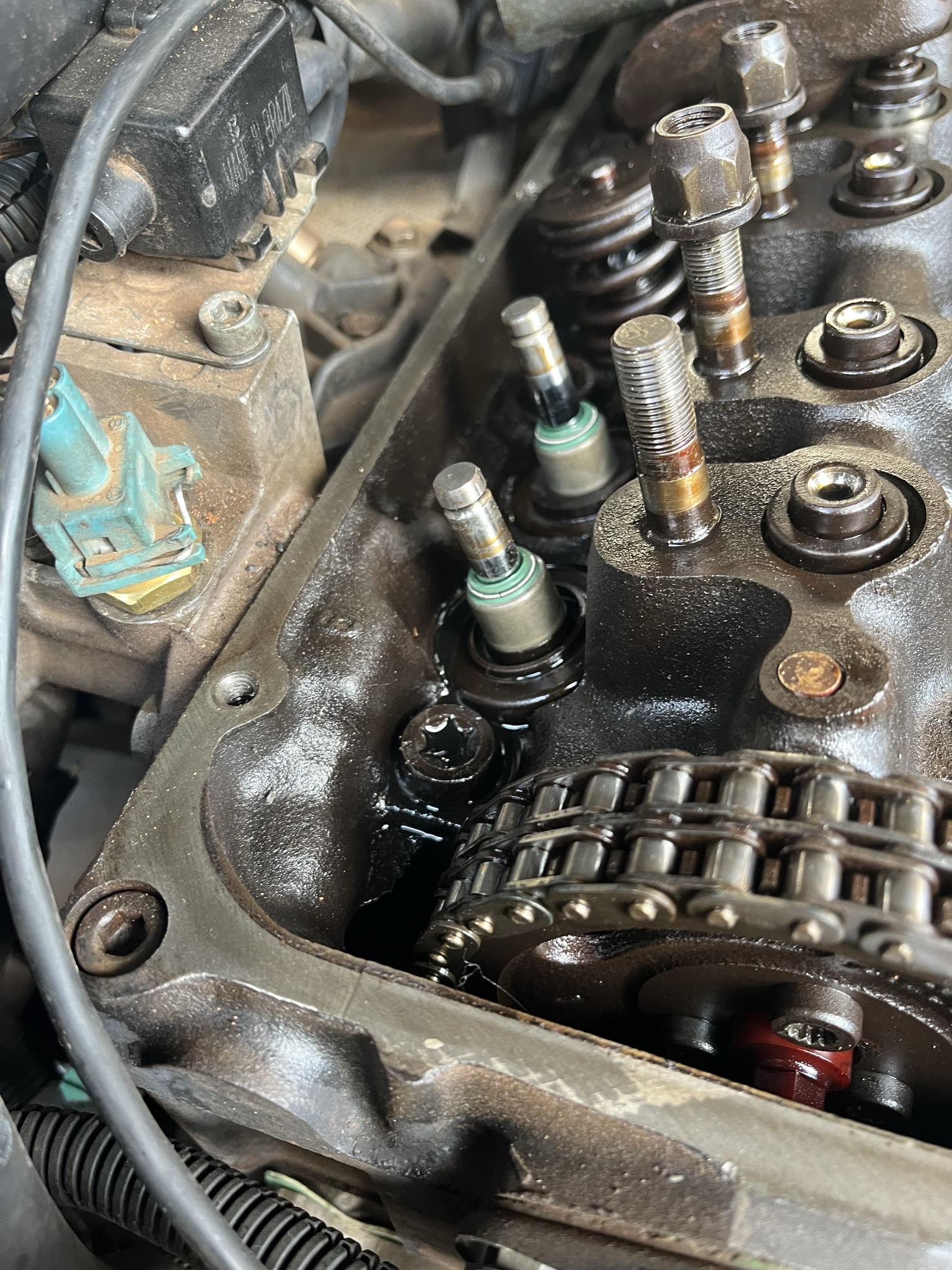 Fiz uma mão que estava pendente a muito tempo, a troca dos retentores de válvulas. É perfeitamente possível fazer no lugar mas MUITO CHATO. A ferramenta de compressão fica sem curso na maior parte das válvulas por interferir com o coletor de admissão ou com a corta fogo. A GM instrui a usar uma ferramenta de compressão parafusada no prisioneiro, e fiz uma semelhante com ferro chato, que não é muito resistente mas deu pro gasto.